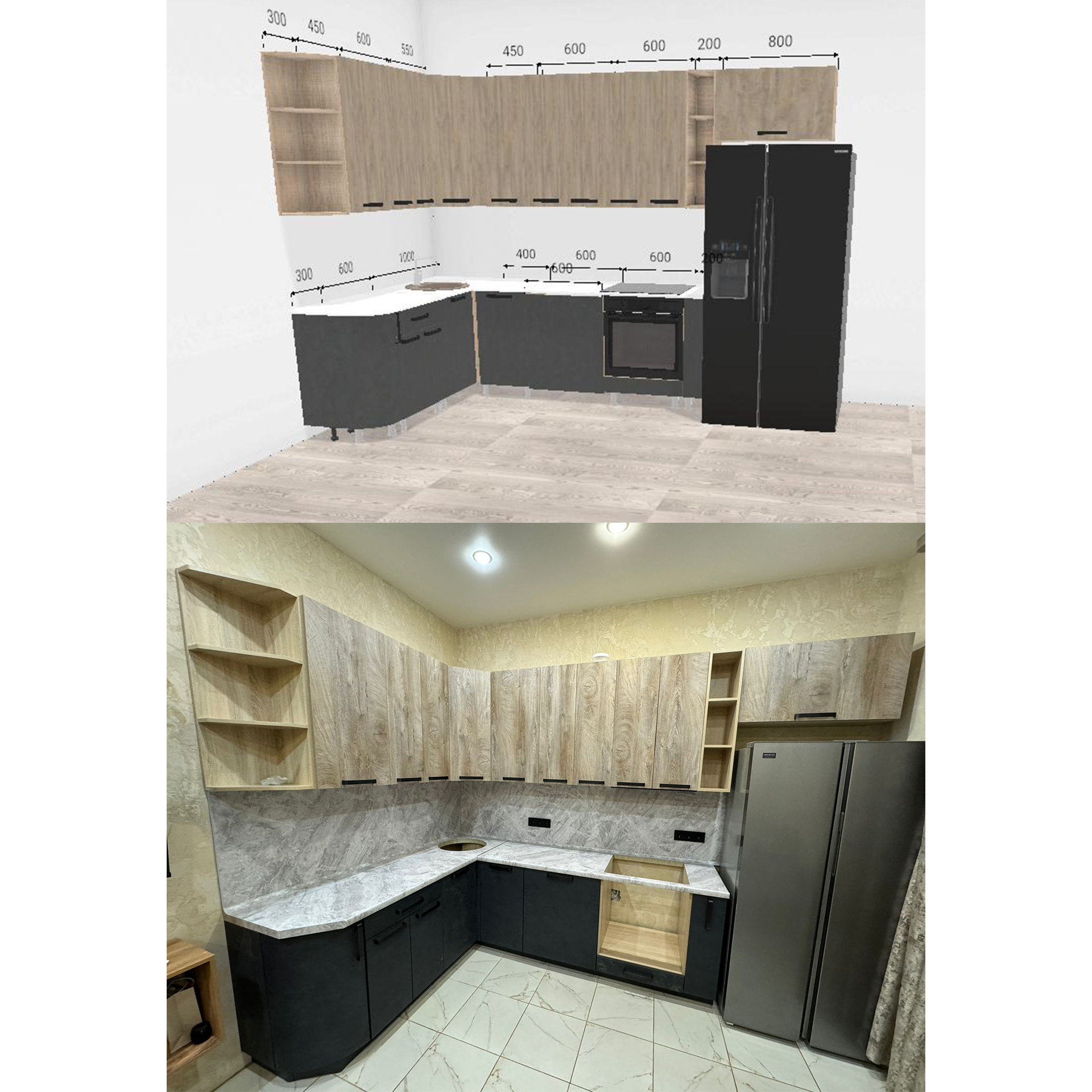 Не нужно платить больше за изготовление кухни на заказ по своим размерам - мы составим дизайн-проект Вашей кухни, подберем необходимые модули под размеры помещения и необходимость клиента!