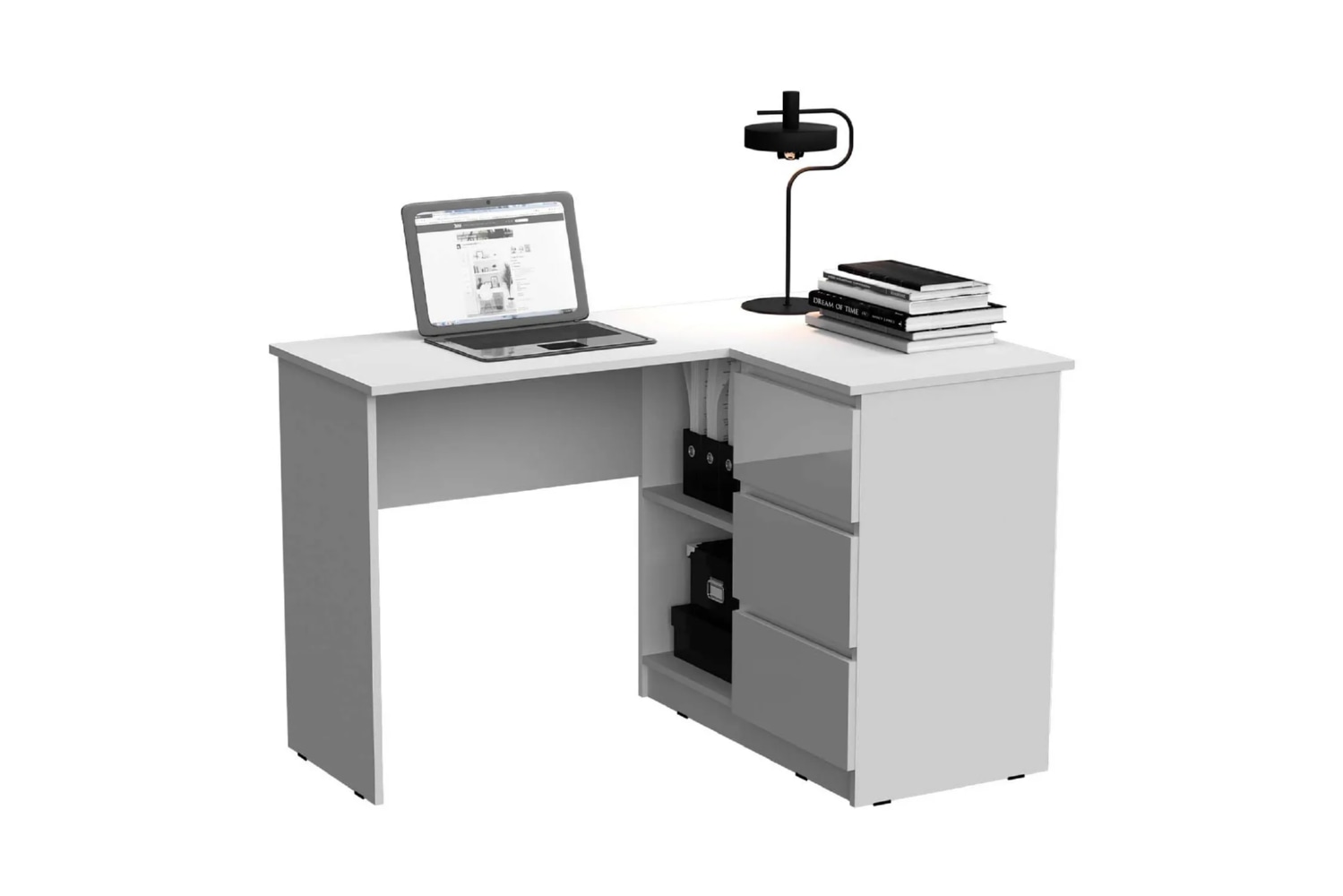 Челси Стол письменный угловой (Ш) (Белый глянец холодный, белый)