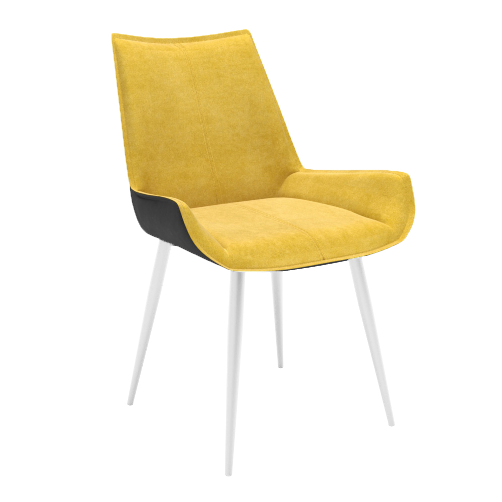 Тип стула - разборный Материал изготовления: Спинка/сиденье: металлический каркас, поролон Подстулье: металлический каркас в порошковой покраске Тип обивки: Велюр жёлтый Ultra Mustard Цвет подстулья: Белый Максимальная нагрузка: 100кг