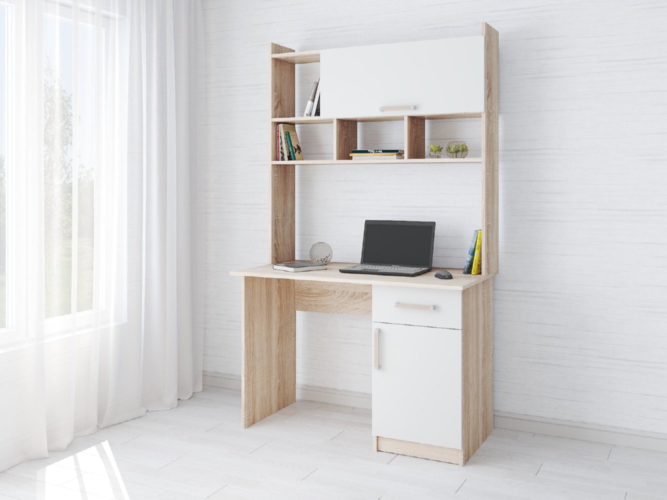 Компьютерный стол Квартет-10 дуб сонома/белый 1880х1118х600