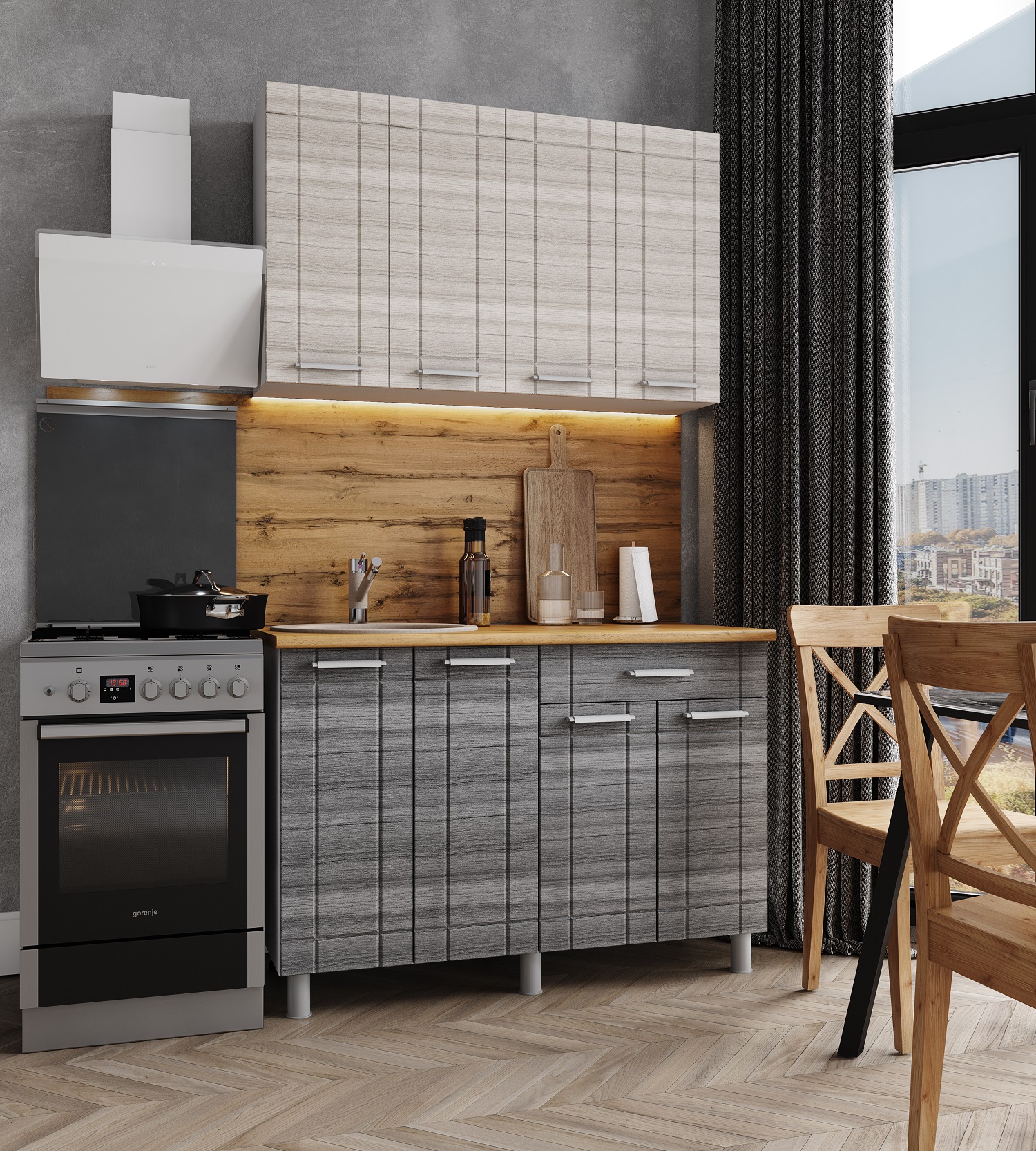 Кухня «БОМБЕЙ», 1200 мм, сандал белый/сандал серый