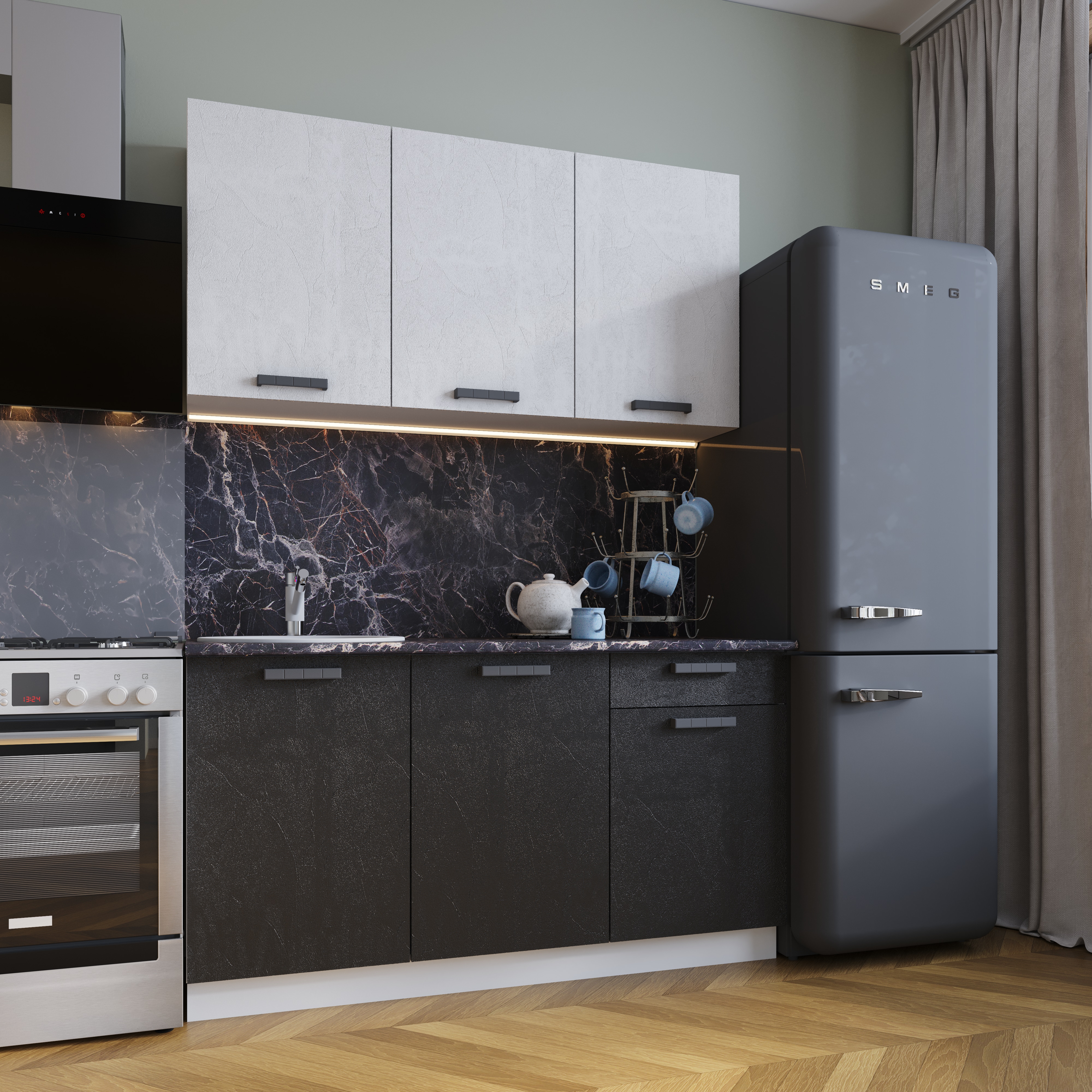 Кухня "Григгс Готовое решение" 1,5 м Камень светлый/Камень темный/Дуб сонома (без стол-цы)