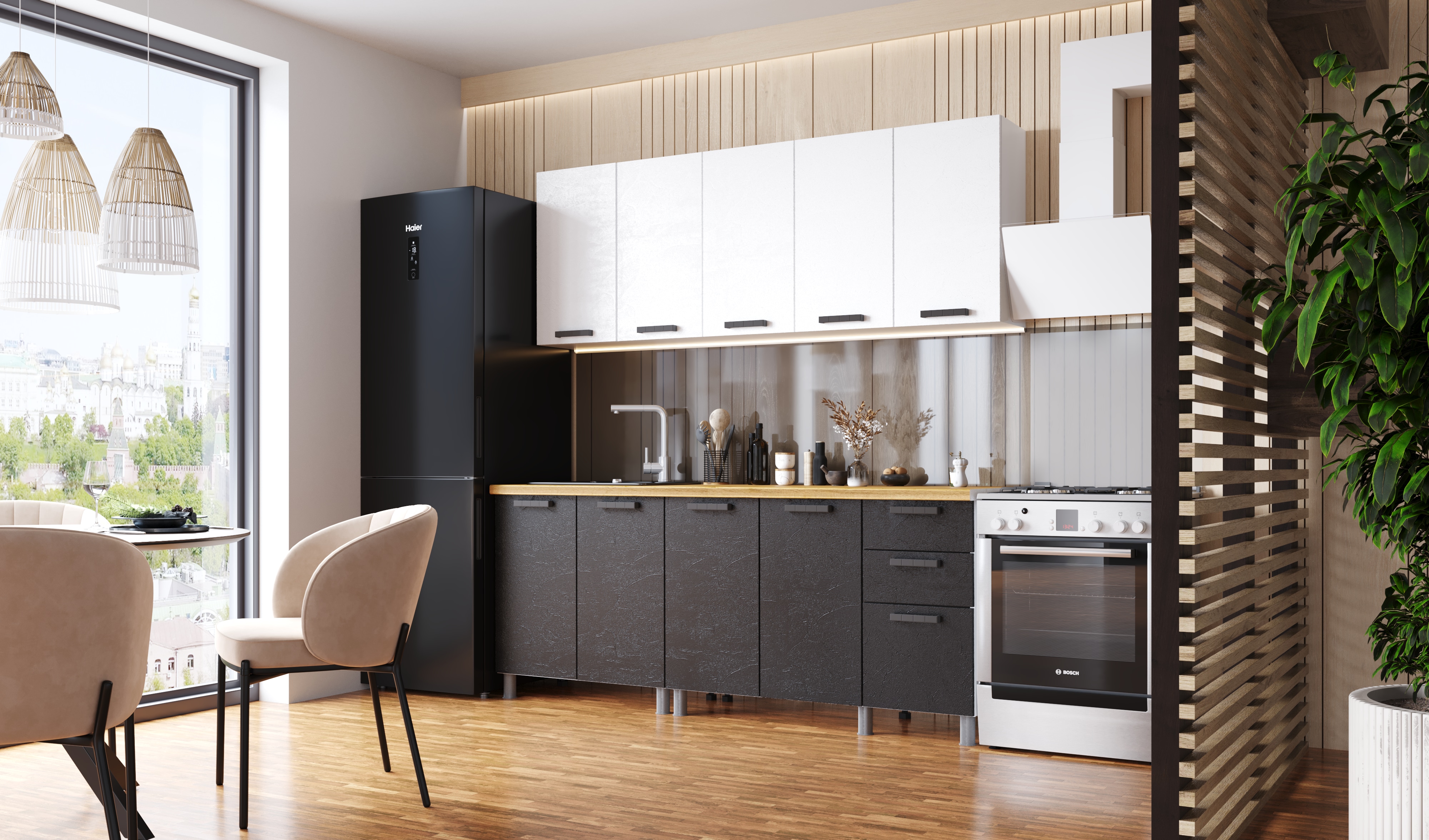 Кухня "Григгс Готовое решение" 2,0 м Камень светлый/Камень темный/Белый (без стол-цы)