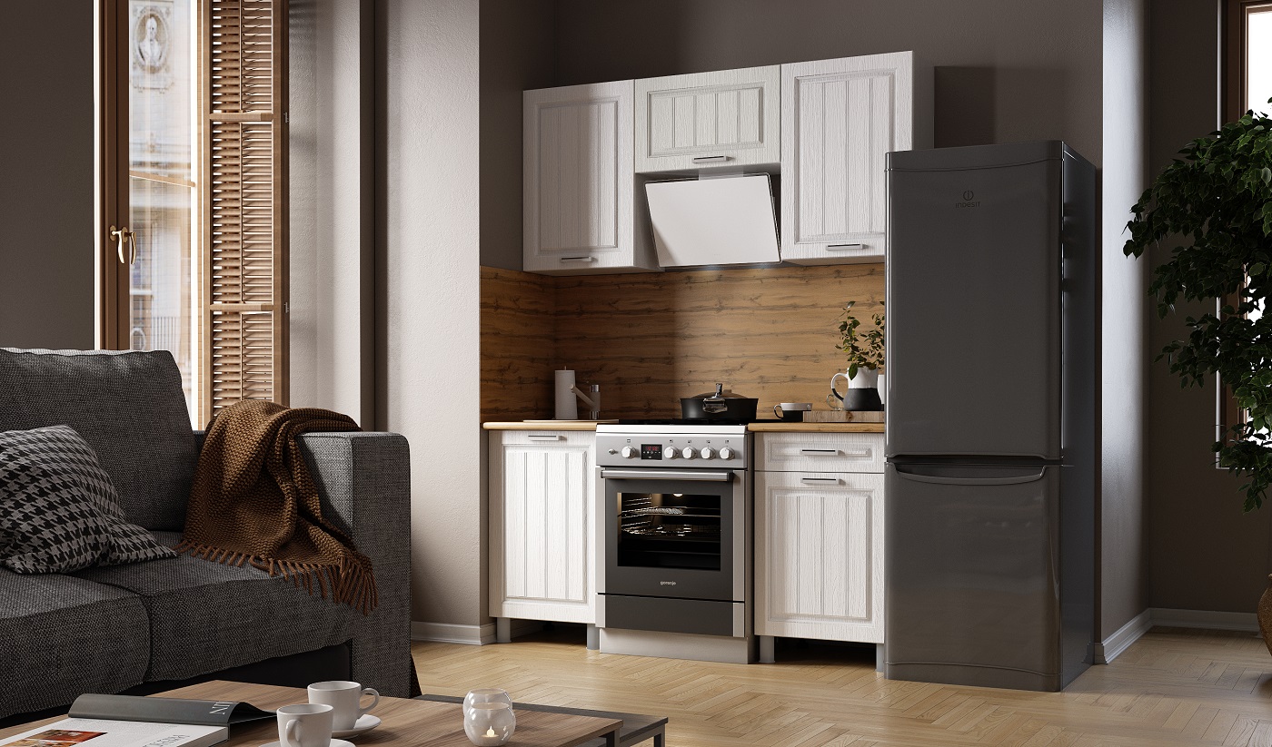 Кухня "Луксор Готовое решение с окапом" 1,6 м Клен Белый/Клен Белый без стол-цы (star)
