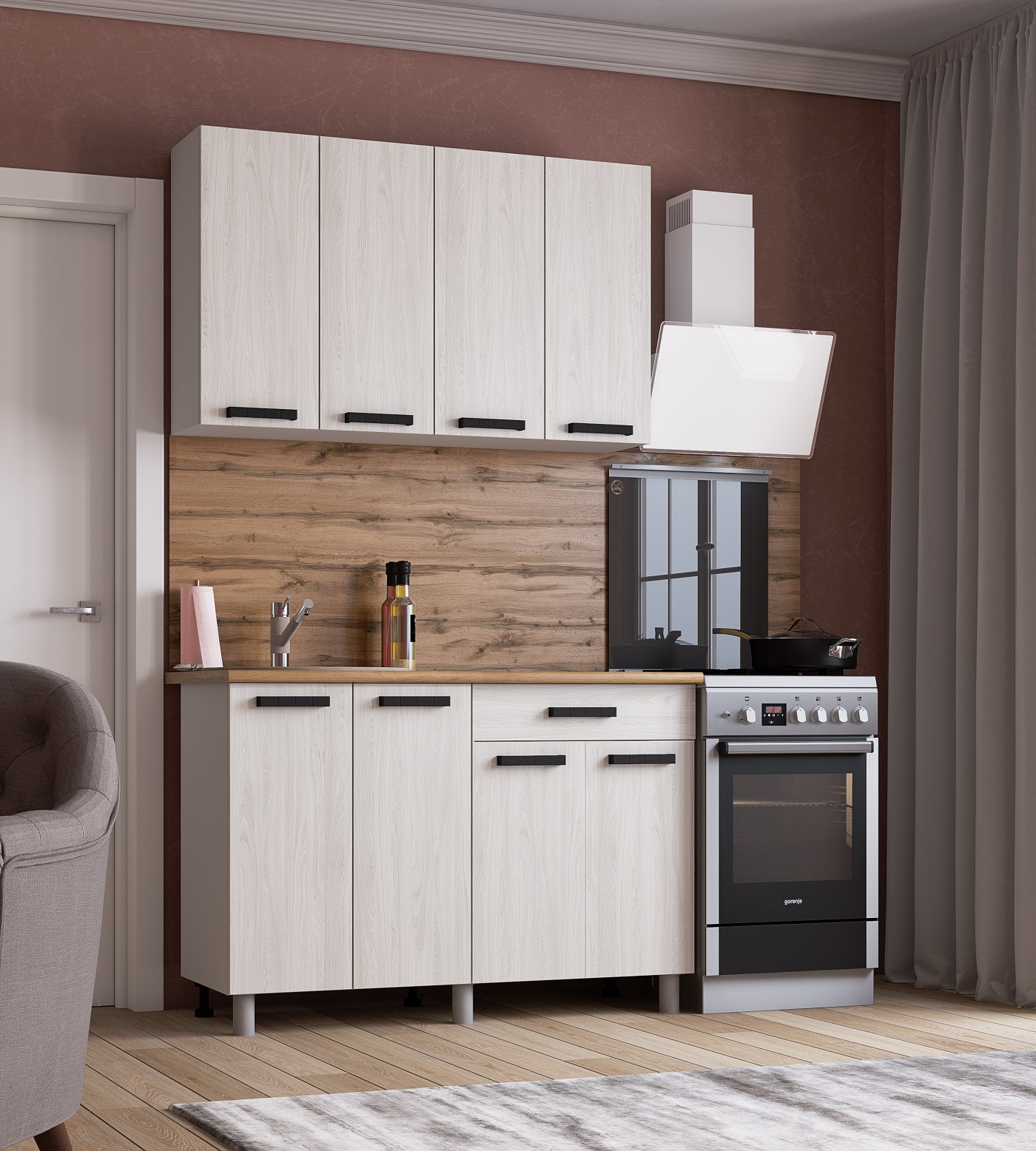 Кухня "Нагано Готовое решение" 1,2 м Ясень Анкор светлый без стол-цы (star)
