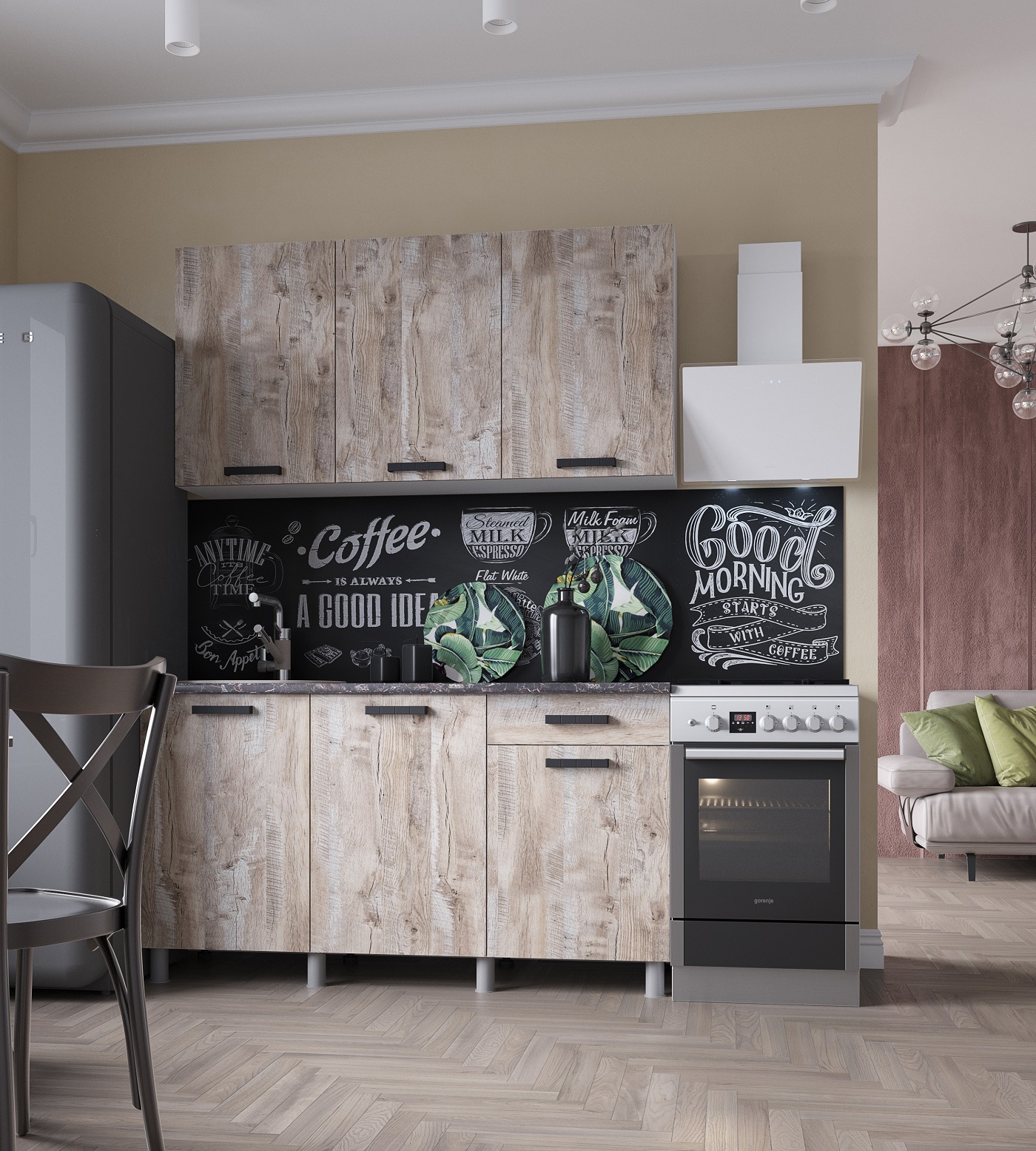 Кухня "Нагано Готовое решение" 1,5 м Дуб Юкон без стол-цы (star)