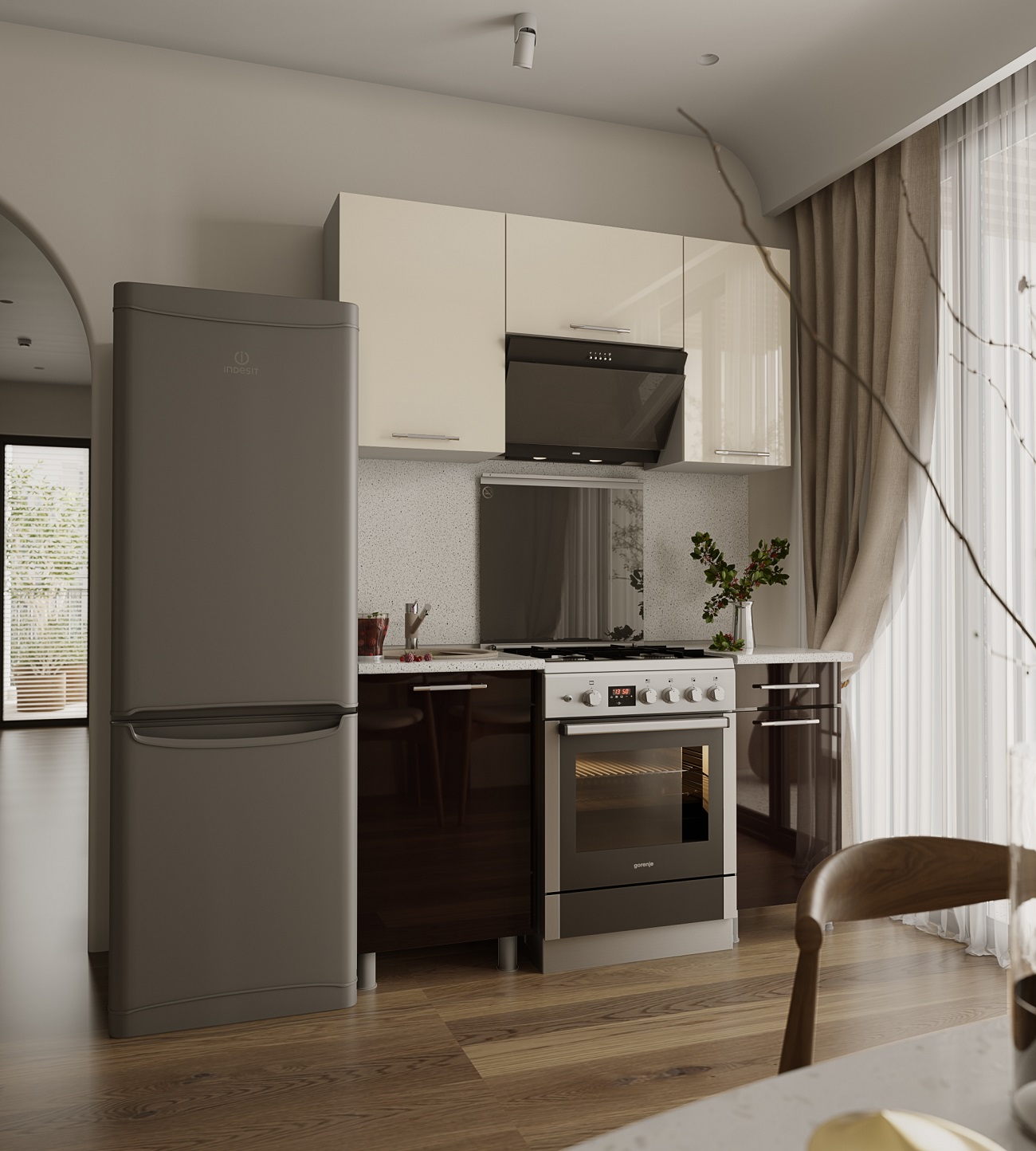 Кухня «ТАНГО» с окапом, 1500 мм, ваниль/горький шоколад