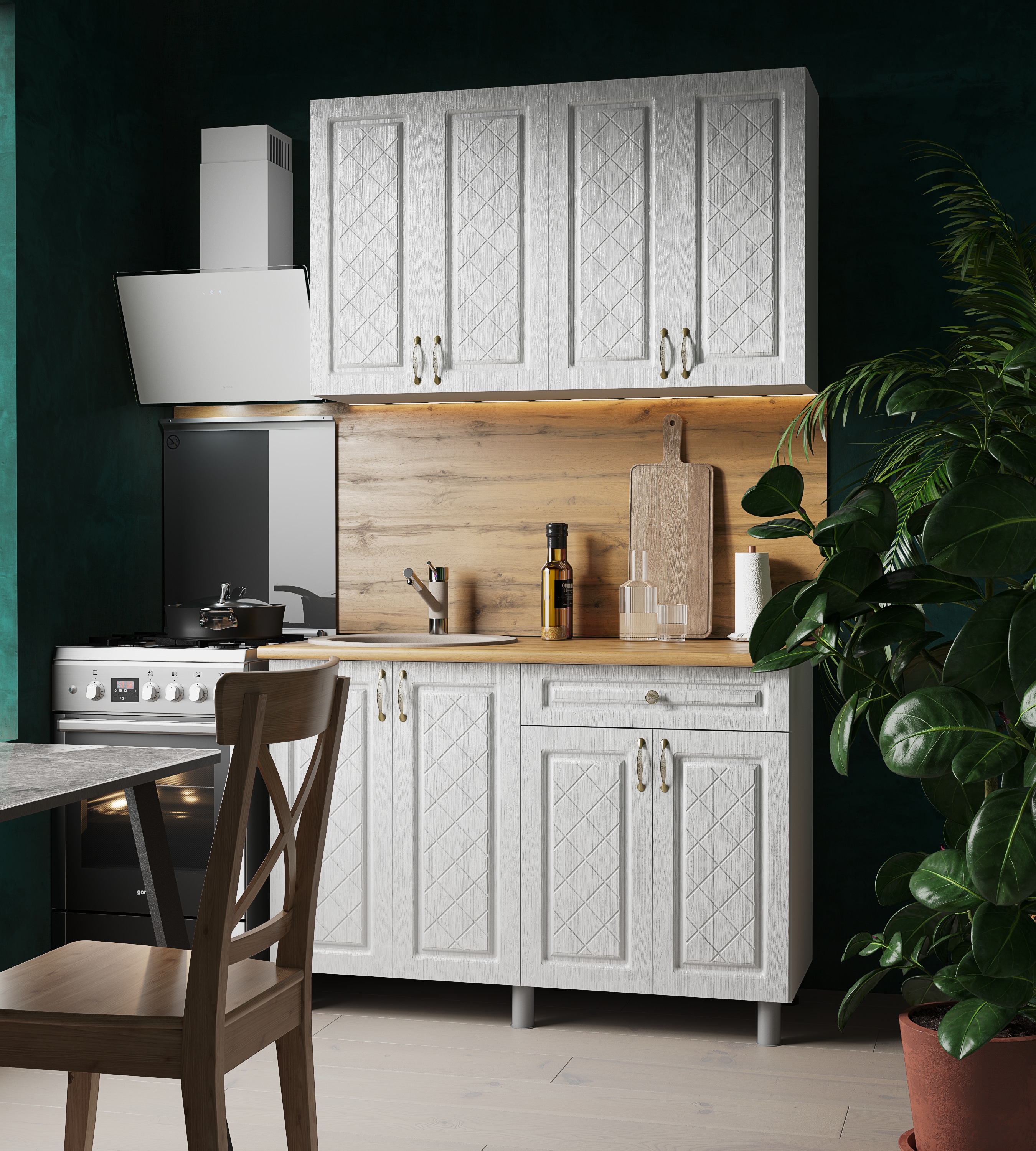 Кухня "Версаль Готовое решение" 1,2 м Арктик/Арктик/Дуб сонома (без стол-цы)