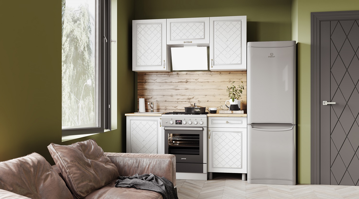 Кухня "Версаль Готовое решение с окапом" 1,6 м Арктик/Арктик без стол-цы (star)