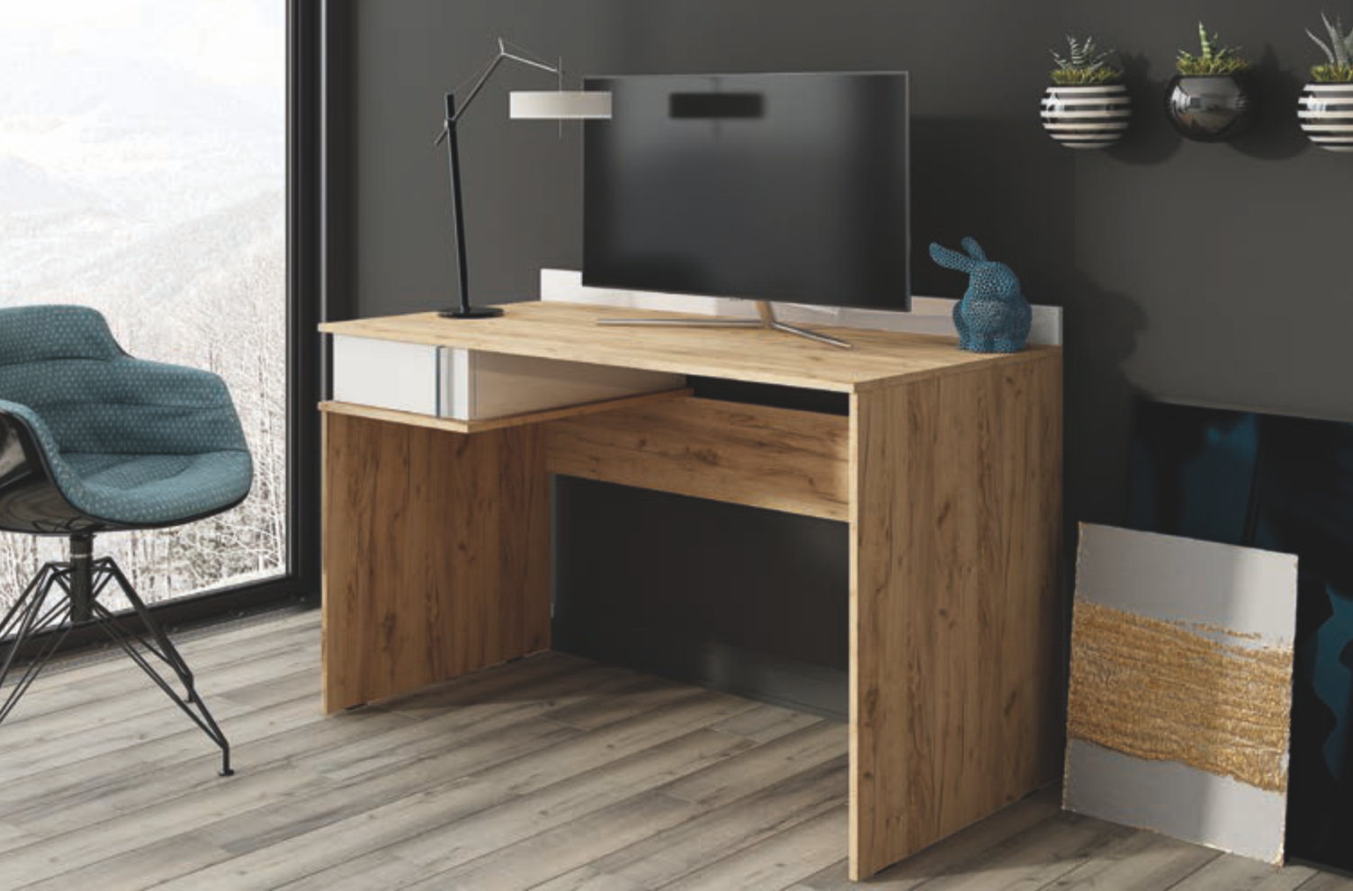 ЛДСП Стол письменный ДЖАМП Дуб вотан/Белый гладкий Э 1165х860х600