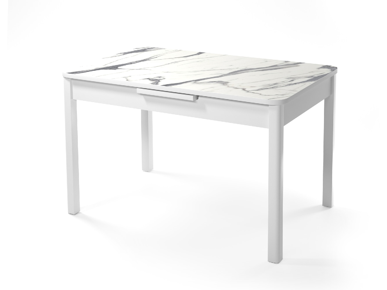 Размер стола: 1200х800х750мм Тип каркаса - Разборный царговый пояс ЛДСП, металл в порошковой покраске Тип раздвижения - раздвижной автоматический механизи "BAUT" (вставка 300мм) Декор столешницы - пластик Мрамор белый В1 (основа ЛДСП/МДФ 22м)