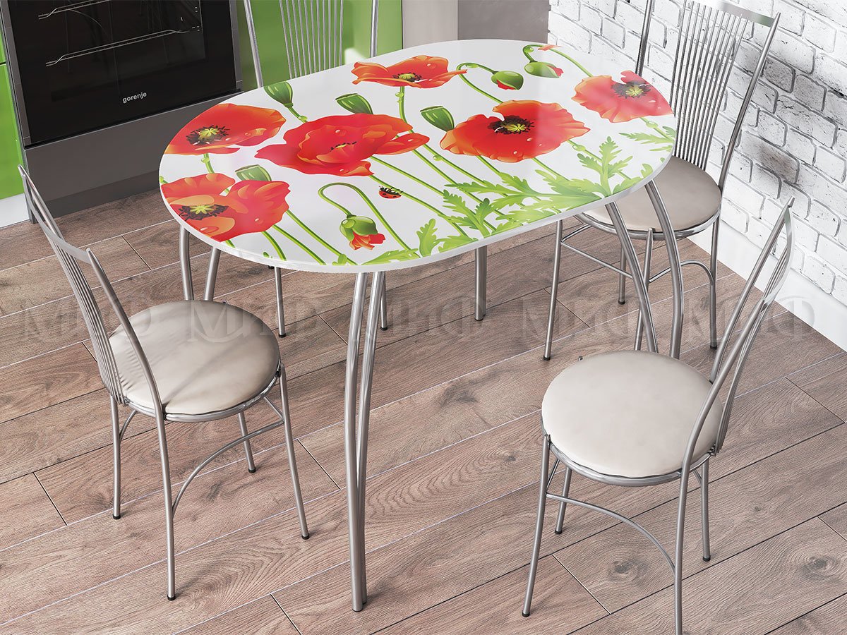 Стол кухонный овальный 1000*670 (Маки)