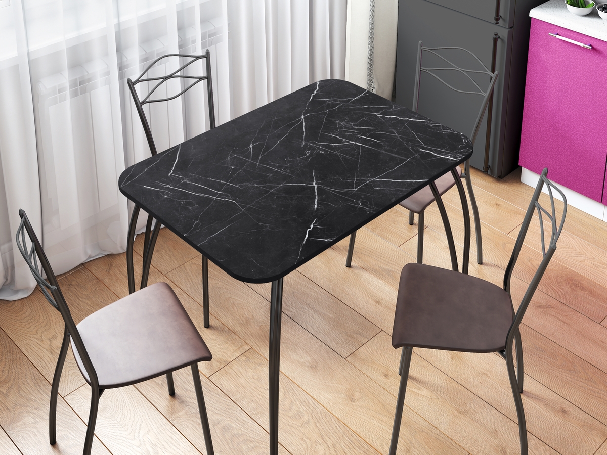 Стол кухонный прямоугольный 1000*670 (Мрамор черный (опора черная))