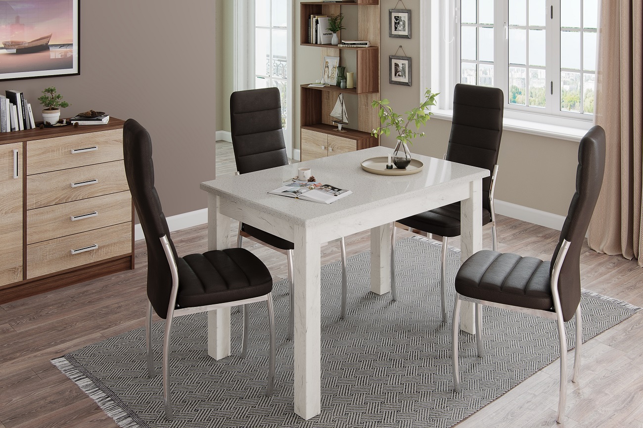 Стол обеденный Бостон-1 дуб крафт белый/белый гранит