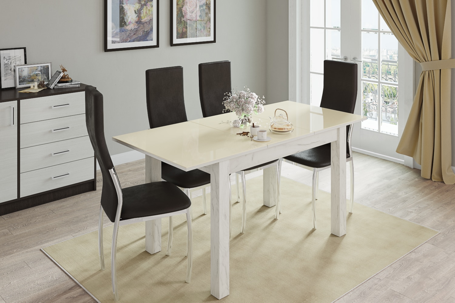 Стол обеденный Бруно 1000х600 дуб крафт белый/лакобель ваниль