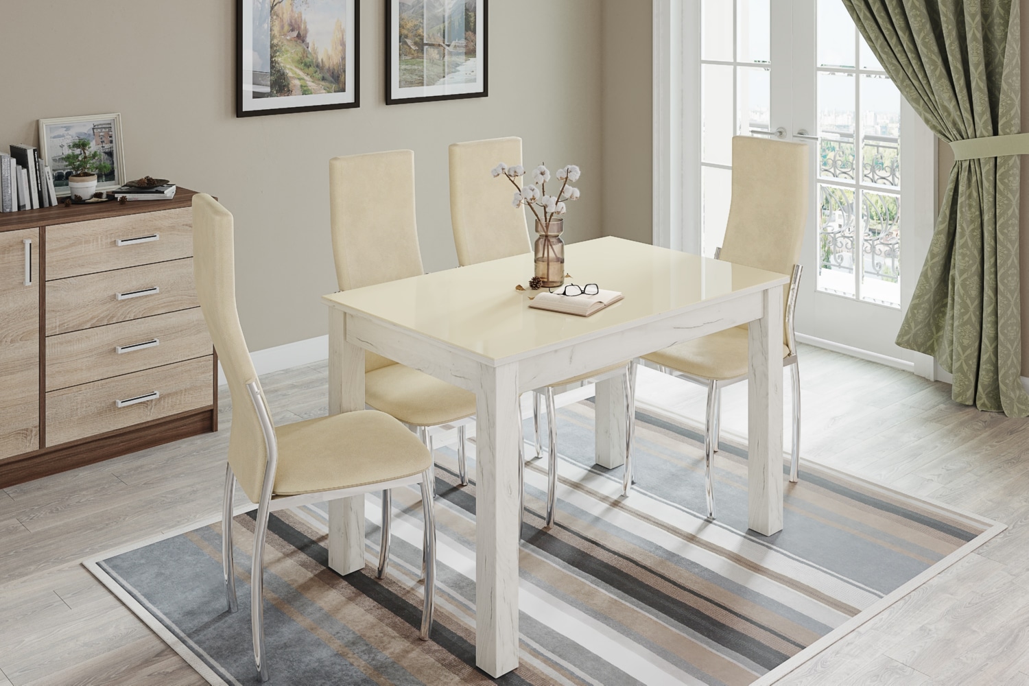 Стол обеденный Норман 1000х600 дуб крафт белый/лакобель ваниль